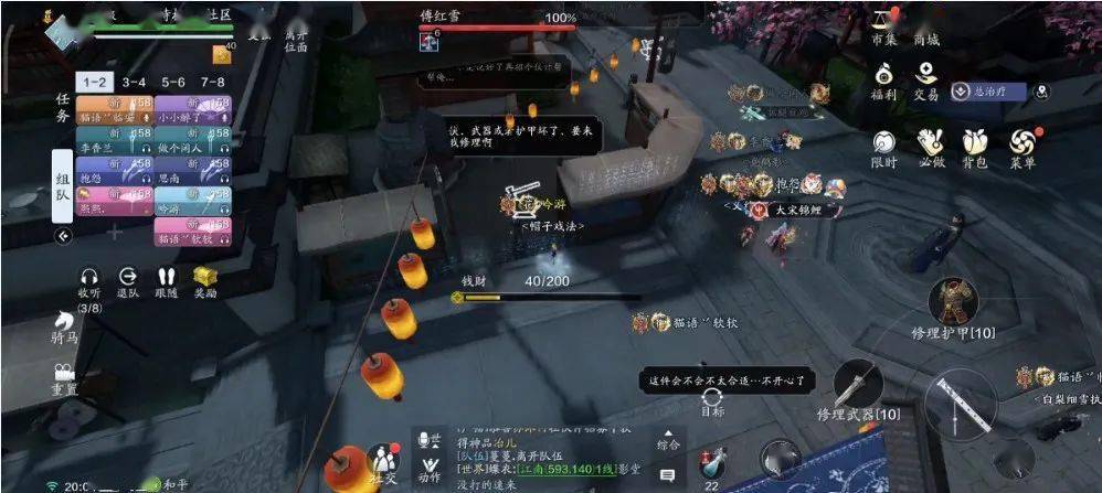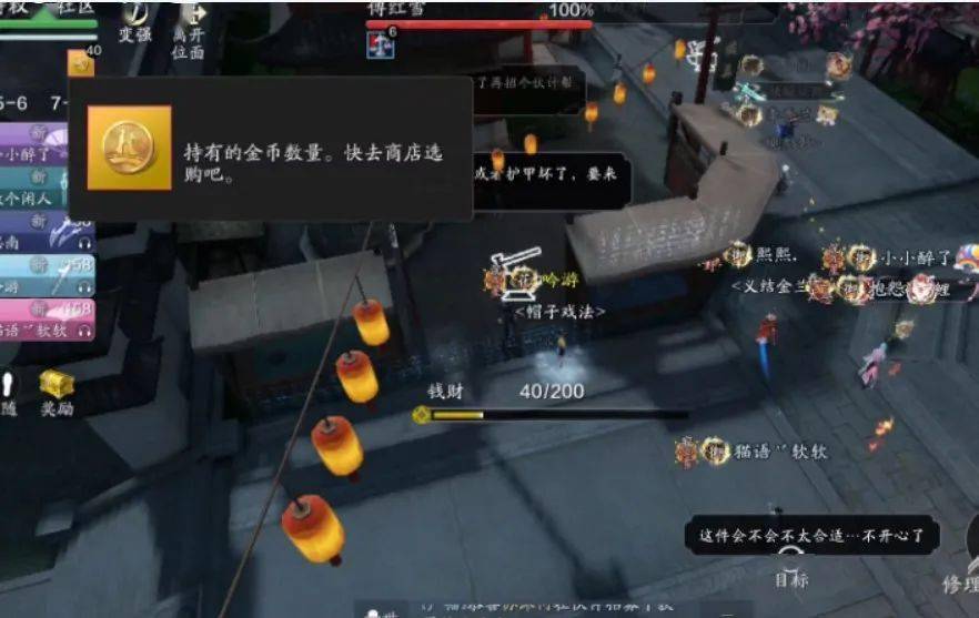 在鬼市中,我们可以使用金币来维修装备,购买增益BUFF。初始金币为40,挑战过程中会随着路人的打赏而增加。