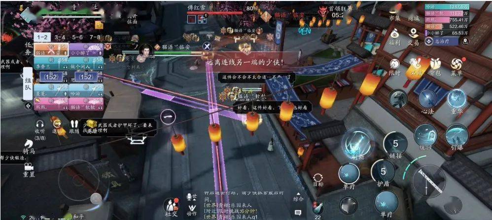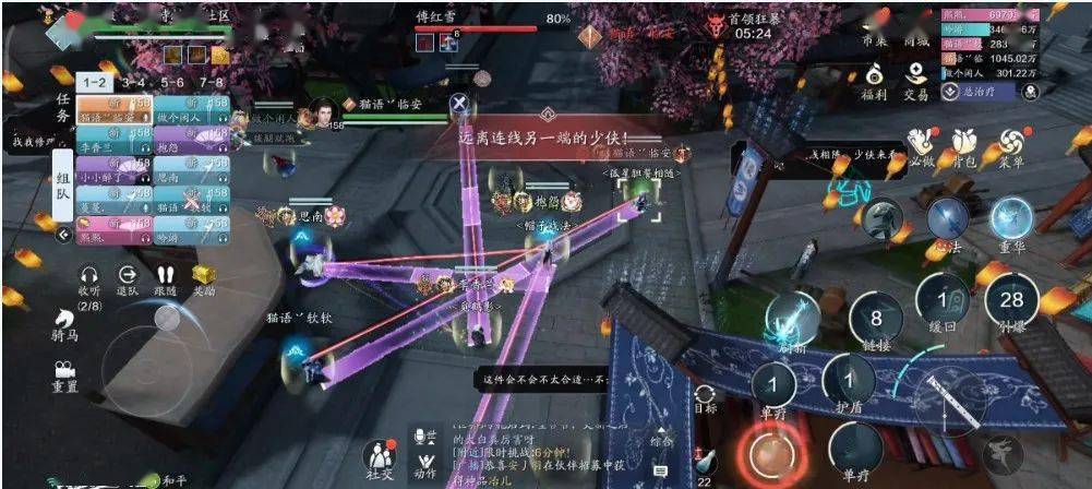 想要破解这招很简单,只需要连线的两位少侠拉开彼此的距离,直至线条变为绿色即可。
