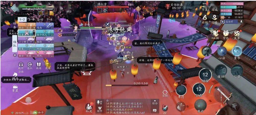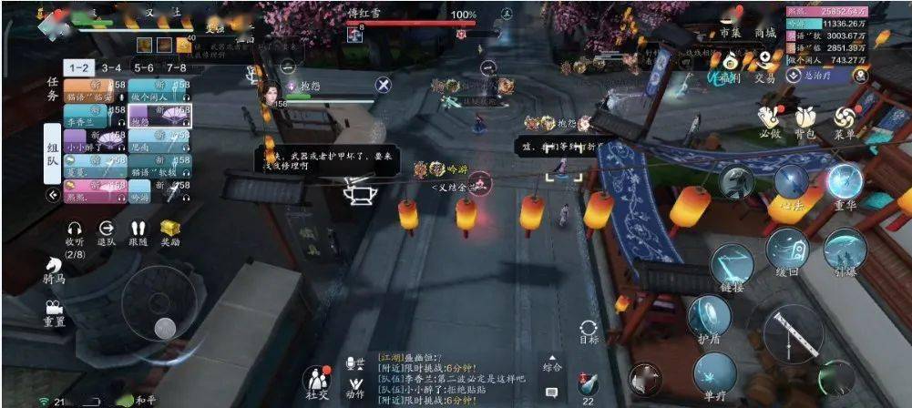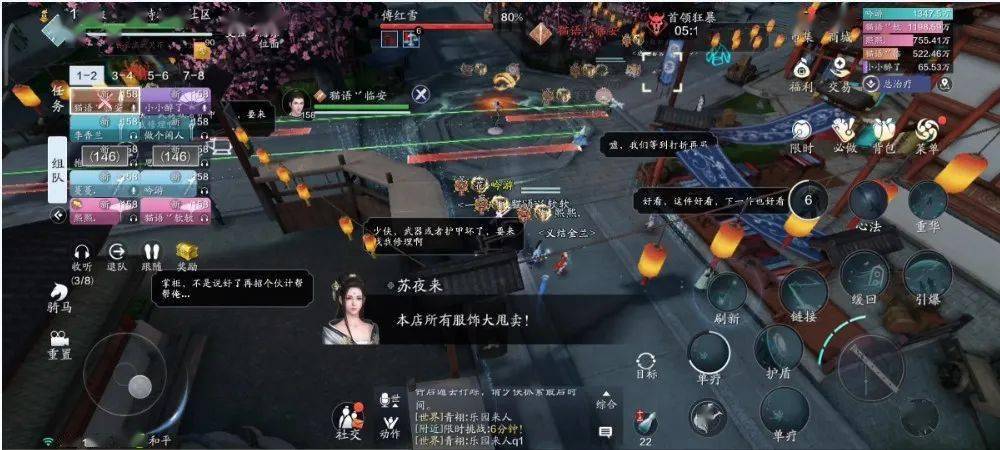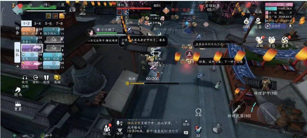 本次挑战的区域不再是虚空幻境,而是由时空交汇形成的 【琳琅鬼市】。“鬼市”为十字街,大家在此挑战BOSS的同时还能获得围观路人的喝彩打赏,颇有种“江湖卖艺”的感觉。同时,鬼市中还有大家熟悉的NPC售卖增益道具,只是挑战前期,我们“卖艺”的收入很难买得起这些道具。