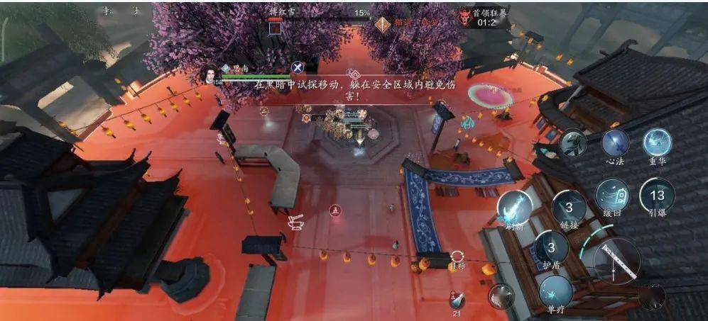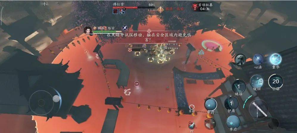 傅红雪发动《大悲赋》使得天地变色,黑夜降临。我们需要在天亮时确认安全区位置,并尽快进入安全区,若是陷落在黑夜中,则会受到高额伤害。
