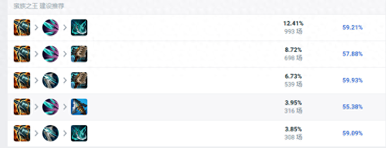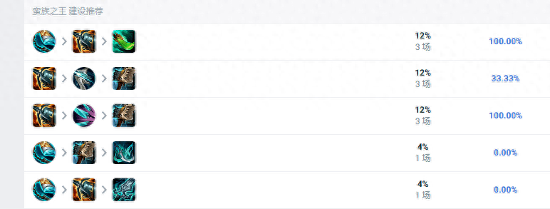 出装方面蛮王现在有两种流派。钻石以下的数据中,蛮王还是比较常规的暴击套装,海妖加狂风或者迅刃,第三件出破舰者单带。