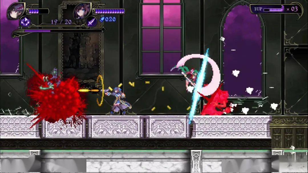 本作是为了让化为恶魔之城的学校恢复原状,以「恶魔猎人」为业的 2 名女高中生挺身战斗的 2D 横向卷轴动作游戏。玩家要分别操作性能相异的两名角色,以头目恶魔严阵以待的关卡深处为目标前进。打倒头目恶魔取得新的武器,在后续关卡展开进一步的攻略,以及发掘新路线的探索要素是乐趣所在。