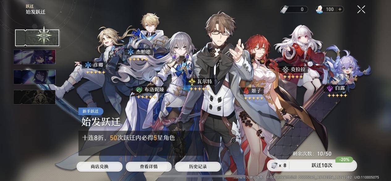 本次测试之所以叫做跃迁测试呢,最重要的还是跃迁,除了基础角色外,这次跃迁也增加了光锥跃迁。