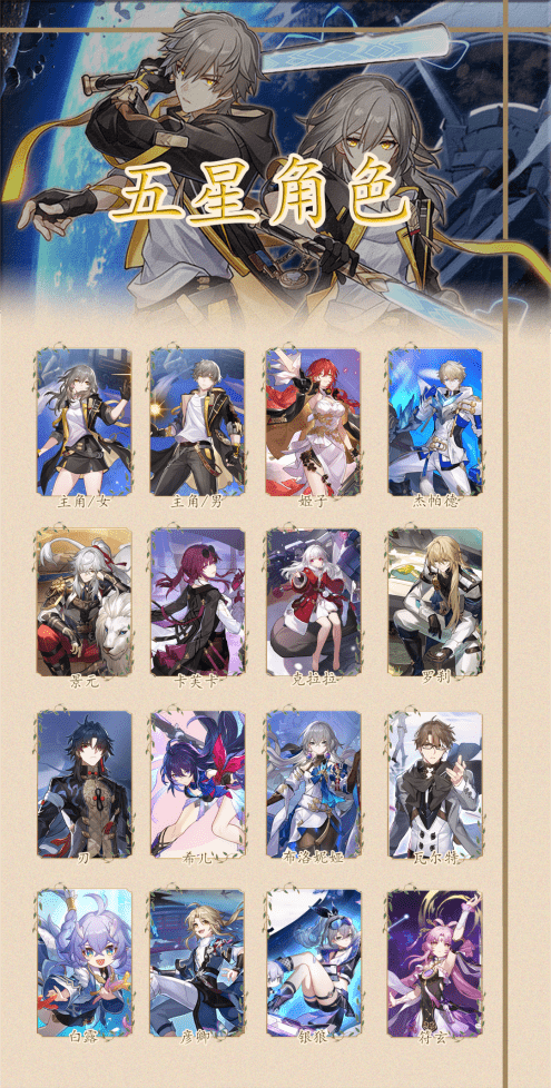 主角,姬子,杰帕德,景元,卡芙卡,克拉拉,罗刹,刃,希儿,布洛妮娅,瓦尔特,白露,彦卿,银狼,苻玄