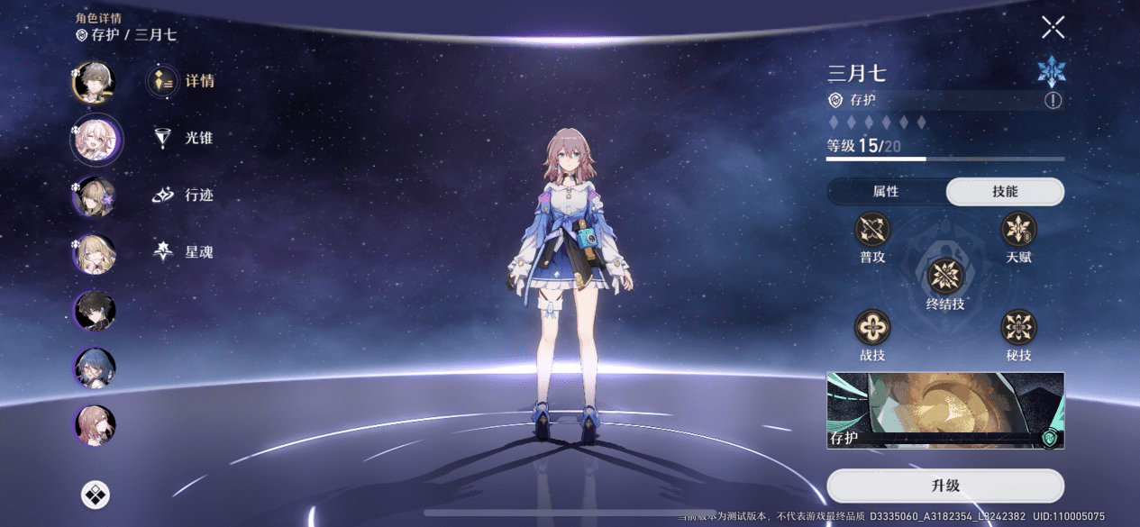 通过专属搭配的光锥、行迹、星魂给特定角色升级,养成角色是游戏主要肝活之一。
