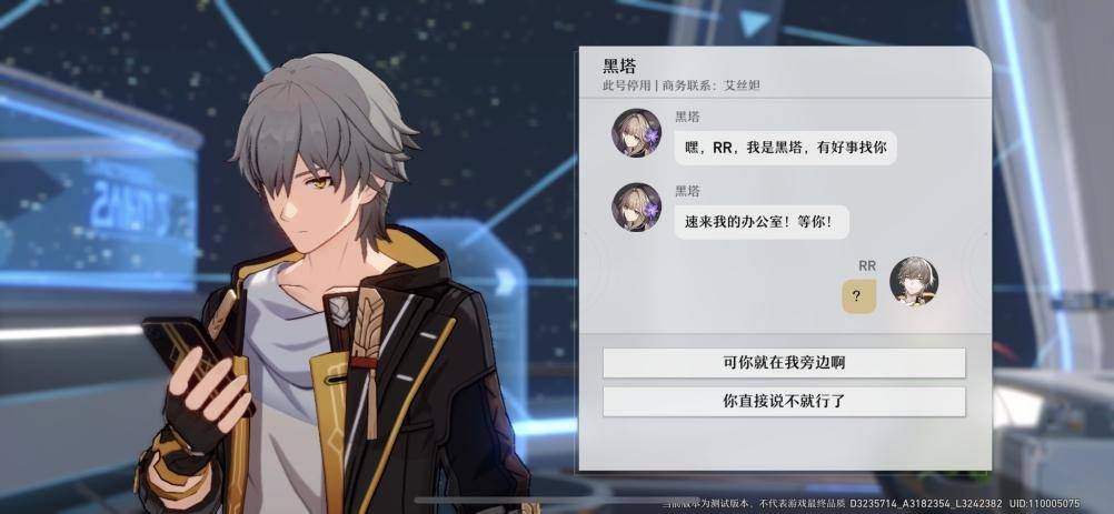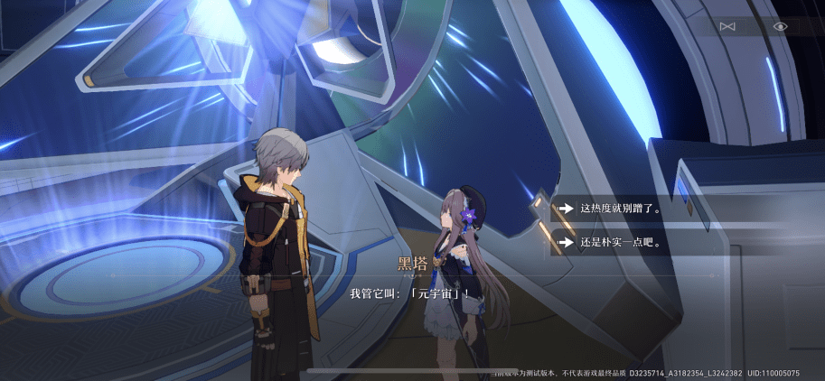 这里的剧情是我们刚和黑塔说完话,就需要按照安排好的路线去她的办公室找她,但是在对话框里可以看到,我们已经跳脱出一板一眼的路线,有了反抗意识,包括游戏中元宇宙的设定,我们也可以吐槽。