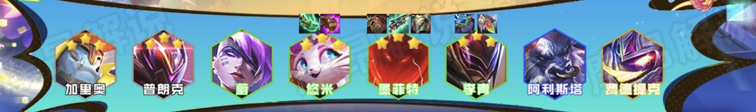 这是一套需要特定棋子专属符文墨菲特的坚如磐石才能考虑的阵容,千万不能强玩。