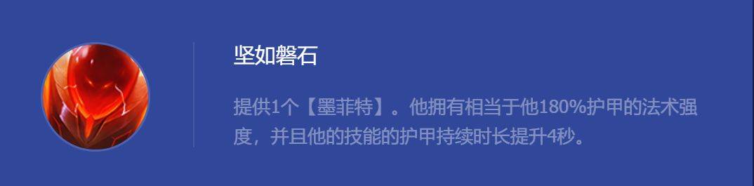 且这版本坚如磐石获得了极大增强,其护甲转法术强度从150%直接提升到180%,可谓是提升非常明显,能给墨菲特多带来30%的法强。