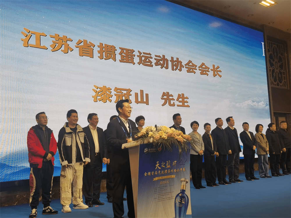 江苏省掼蛋运动协会会长漆冠山主持全国首届竞技掼蛋网络公开赛。