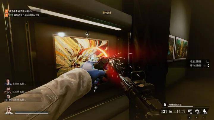 该系列玩法也比较特别和新颖,就是让四人玩家联机合作通关。在大部分关卡中,玩家既可以选择战术潜入,也可以选择暴力“突突突”。无论选择哪种方式,目标都是成功完成任务,在完成地图目标后,获得最后的大奖——PAYDAY。