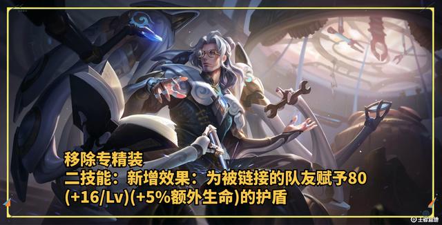 最后就是鲁班大师了,官方移除了鲁班大师的专精装玩法,但是却给他二技能新增加了一个效果,那就是链接队友,可以给队友赋予额外的护盾。