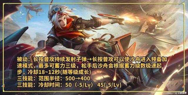官方给他新增加了一个被动,那就是长按普攻,不再是原本的发射子弹,而是会进入蓄力加速模式,最多可以蓄力三级。