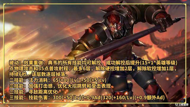 而这一次的调整方案,官方将典韦的被动进行了重做,现在典韦释放每一个技能都可以解除控制。