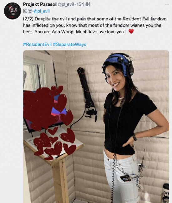 “尽管一些《生化危机》粉丝给你带来了邪恶和痛苦,但你要知道,大多数粉丝都祝你好运,你就是艾达王。满满的爱,我们爱你!”