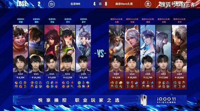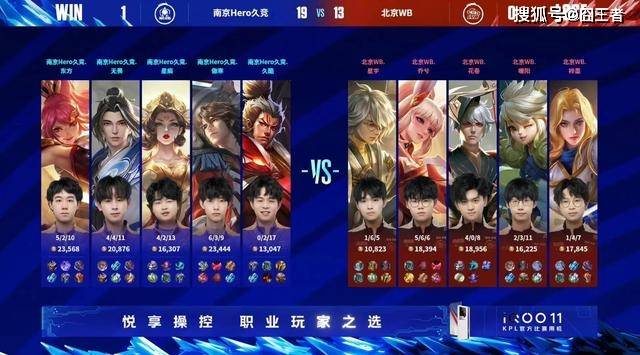 在第一场比赛中,南京Hero久竞以2-3的比分不敌北京WB,惨遭两连败,实际上这场比赛北京WB状态也很差,最后一局南京Hero久竞巨大优势被翻盘,只能说细节上还是不到位。整场比赛南京Hero久竞的阵容BP做的还是很到位的,久哲拿的阵容基本上都有优势,特别是最后一局,一手庄周简直是神来之笔,最后一局南京Hero久竞整场团战几乎无解,事实上,南京Hero久竞也确实打出了很大的优势,只不过后面送了回去罢了。#2023KPL该我上场#