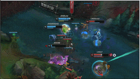后LNG尝试红白刀打大龙,正面JDG则抓住机会开落单的酒桶完成击杀,后续追击LNG选择反开换掉一人。
