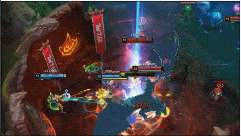 五龙团战,正面369奥恩先手E撞起两人而后开大命中,JDG一波打残LNG状态,LNG选择后撤放掉小龙。