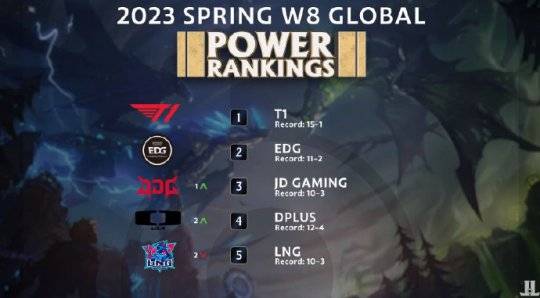 再过两周,各大赛区的春季季后赛就将拉开大幕,而紧随其后的就是五月的MSI季中赛。常规赛进行到现在,哪些队伍实力强劲最有冠军相,其实已经初见端倪。外媒League On Lock日前就公布了最新的战力排名,TOP5榜单分别有:T1、EDG、JDG、DK以及LNG。