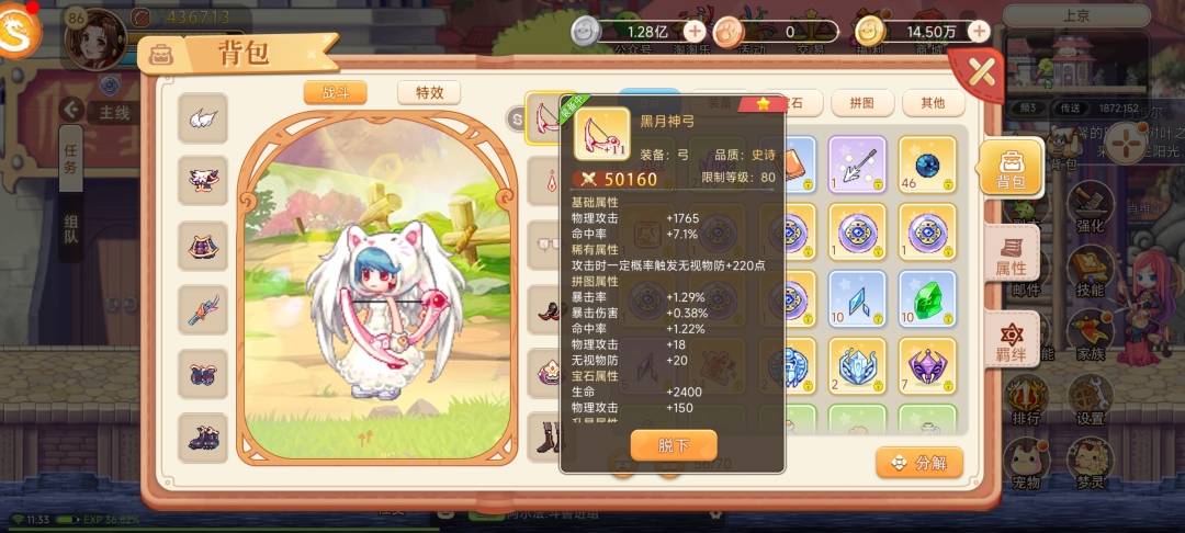 品质定位史诗,是一把神射能使用的弓。这个武器呢是有着稀有属性的,就是攻击时一定概率触发无视物防+220点,是一把非常不错的物理攻击武器。并且武器的基础属性和给到的加成是不一样的,总伤害也不一样,所以在玩家爆出同样品质武器,可以先对比武器的基础属性选择使用,同品质武器还可以进行升星。