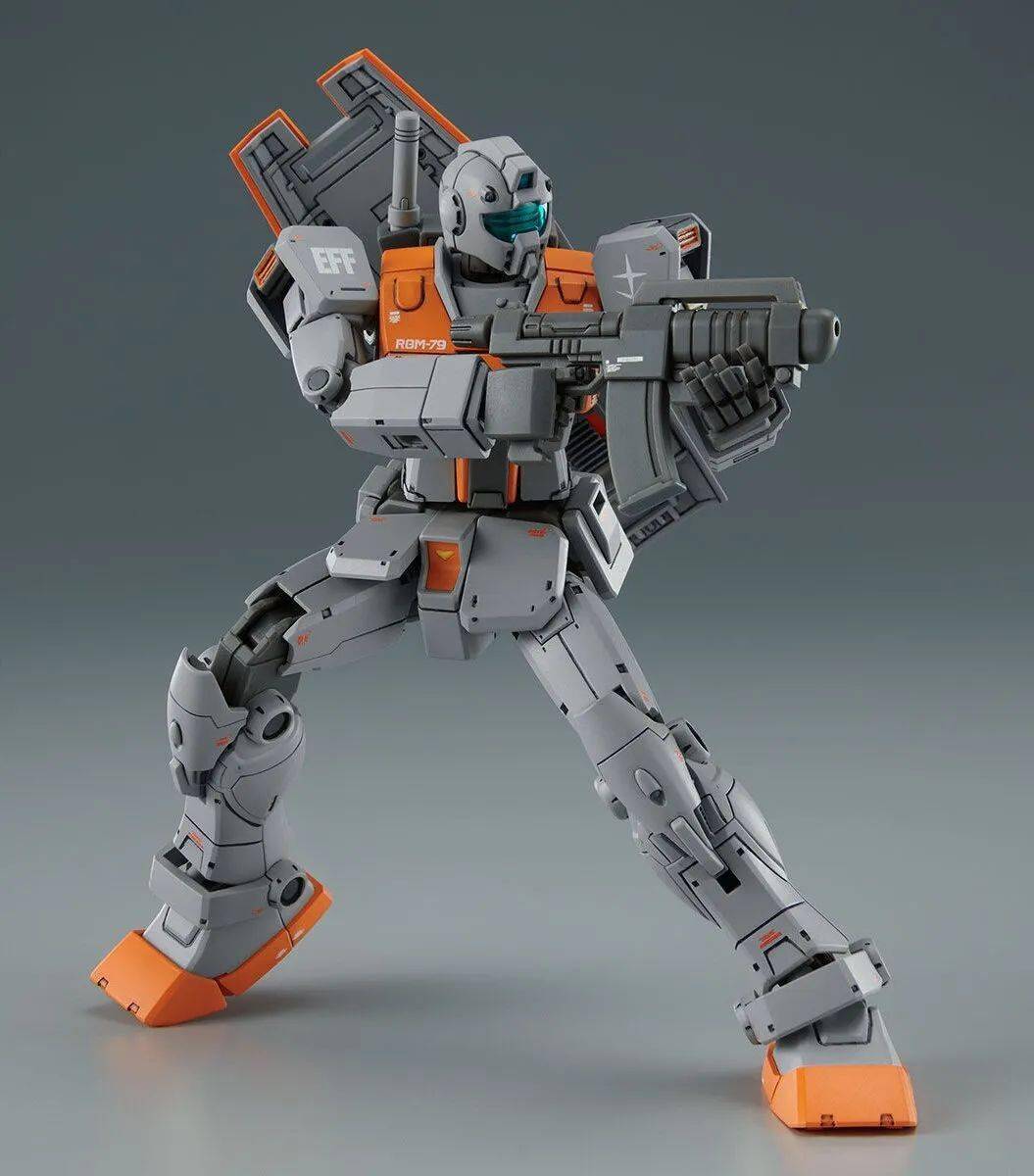 出自「机动战士高达 库库鲁斯·多安的岛」,在卡萨布兰卡的街道登场的 RGM-79 吉姆(摩洛哥战线式样)在HG系列中商品化,以成型色再现具有特征的机体形状。附带肩炮和光束喷枪(初期型)等武器装备。 除了剧中的飞机识别号码标记外,还包括带有原创设计警告标记的新水贴。