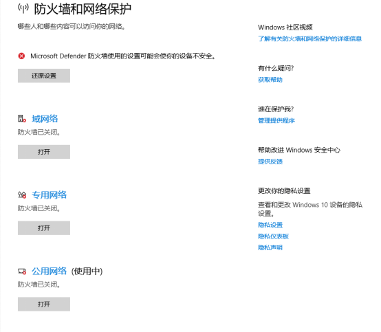 解决办法三、关闭防火墙