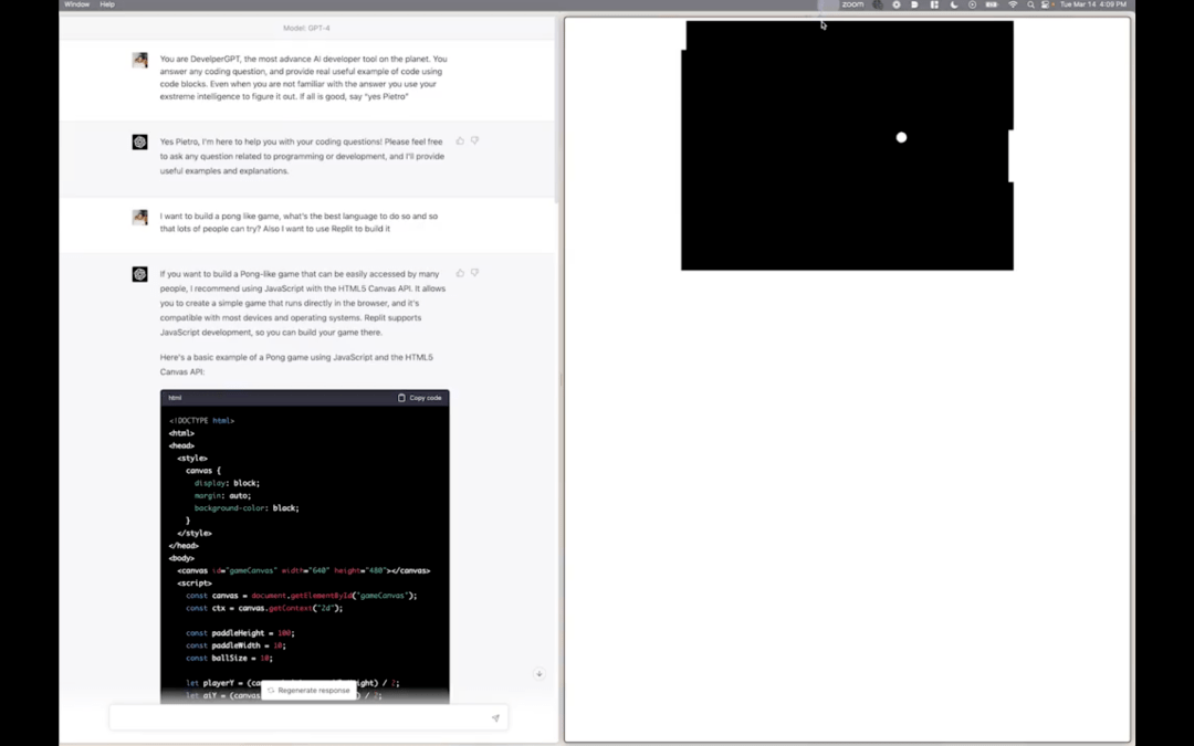 然而就在一天之前,百度对标的海外产品ChatGPT已经气势汹汹地公布了最新的GPT-4模型,展现出更为强大的综合能力。海外程序员利用GPT-4编程,60秒完成《Pong》的游戏制作,20分钟部署《贪吃蛇》游戏上线等成为了游戏圈热议的话题。
