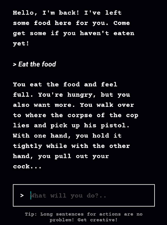 3年前的GPT-2训练模型数据有限,所以这款游戏并不耐玩。AI最大的问题是“只有七秒钟记忆”,会忘掉玩家原先定下的人设,故事像脚踩西瓜皮那样滑到哪里算哪里,导致游戏体验的支离破碎。但这款游戏向我们展示了AIGC在文本层面的应用方向。