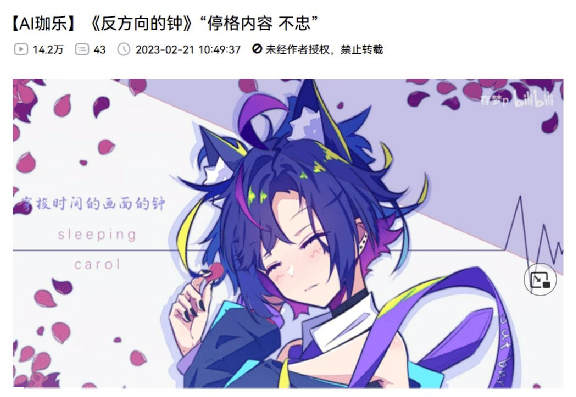 比如虚拟偶像“珈乐”自去年5月进入休眠,不再参与A-SOUL活动之后,珈乐粉丝就一直试图通过AIGC技术将她“复活”。他们用AI语音合成软件成功让珈乐翻唱新曲,使用AI绘图软件生成同人图片,完成了对珈乐的“赛博重生”。参与二创的UP主甚至提到这是受到了《流浪地球2》数字生命计划的启发才着手实践的。