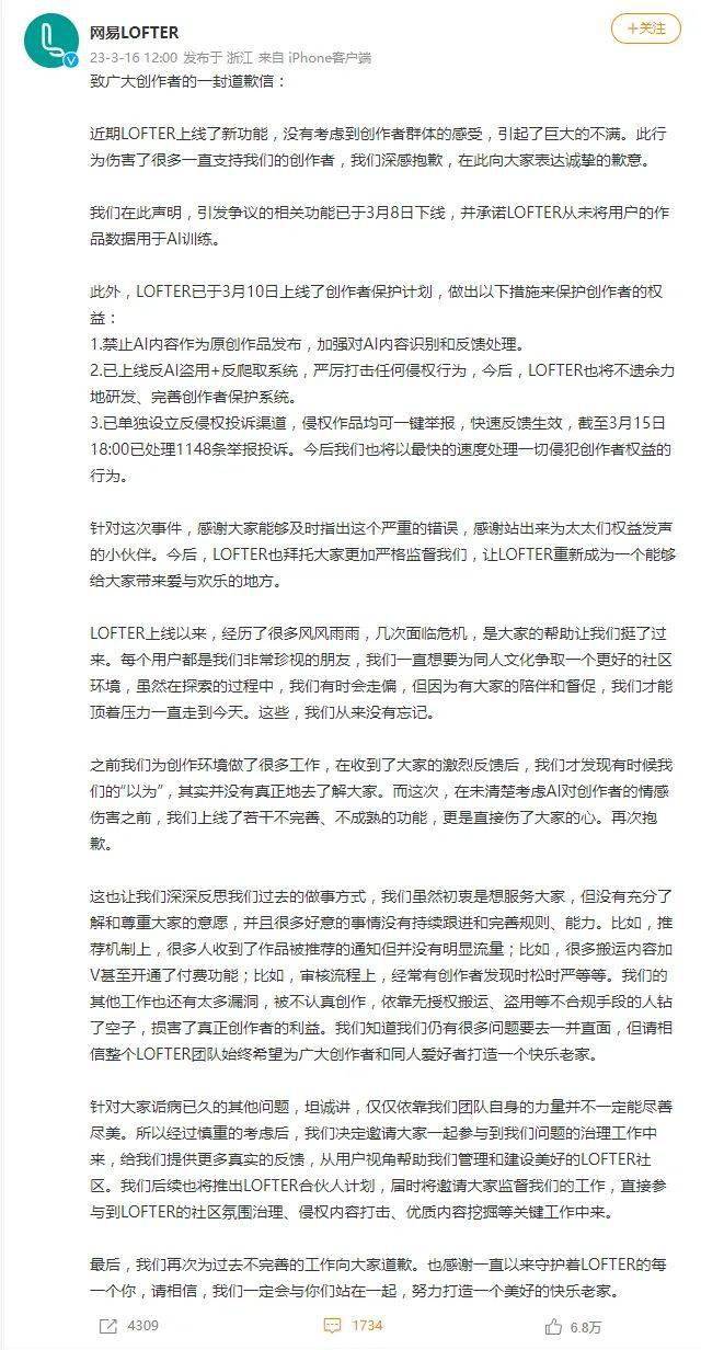 所以,需要抵制的也许并不是AI应用于生产,而是随着AI深度参与生产,原有的版权体系、商业模式需要一场革新。在这个过程中,争议是必然的,也是必须的,而新的规则,会在不断的博弈中逐渐诞生。舆论场最该保护的,是所有群体发出自己声音的权利。