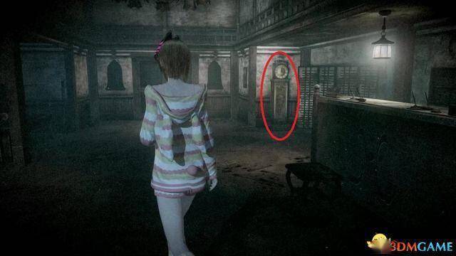 返回大厅,调查大厅内的落地钟后跟随指引拍摄照片,获得管理室的密码。