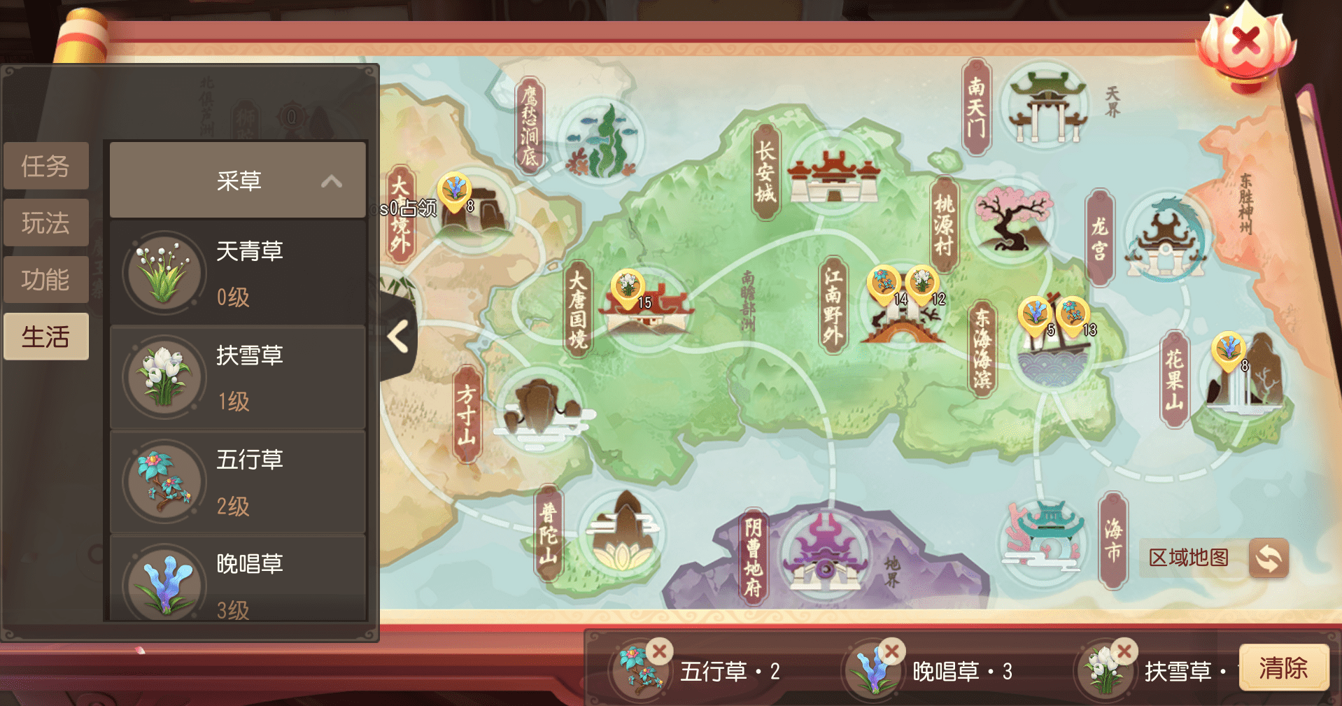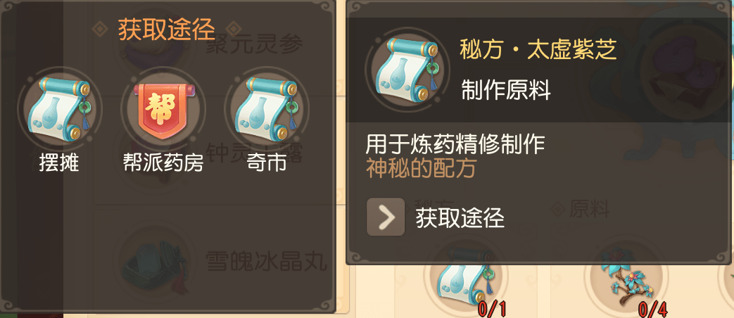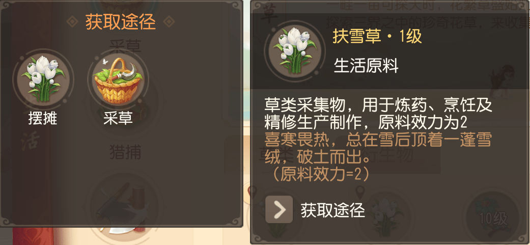 原料的获取一样通过【采草】收集,所需原料品质在2级以上,少侠如果想要靠自身炼药,就需要经常去采草升级。