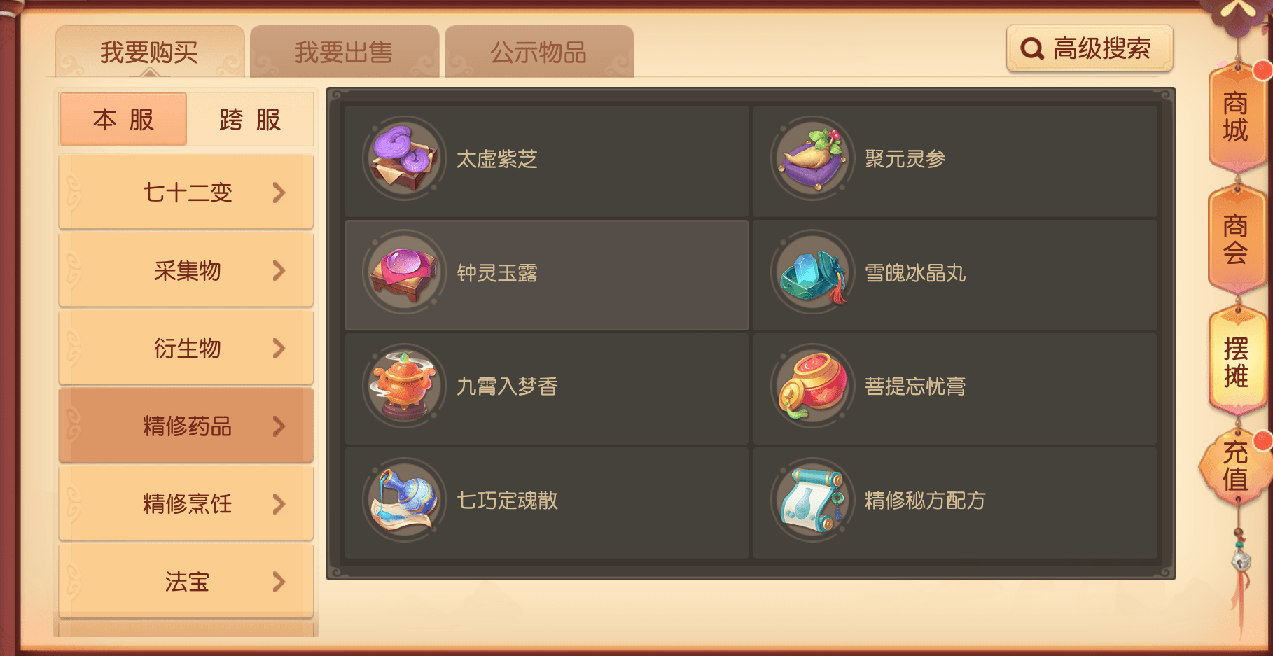 精制炼药需要秘方和三种原料,秘方可通过摆摊、帮派和三界奇市获得,需要秘方的少侠可以定时去刷新购买。