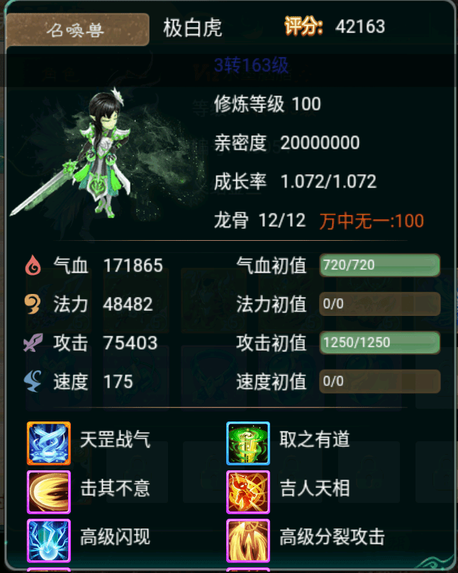 技能搭配:帐饮东都丶分裂攻击丶神工鬼力丶隔山打牛等