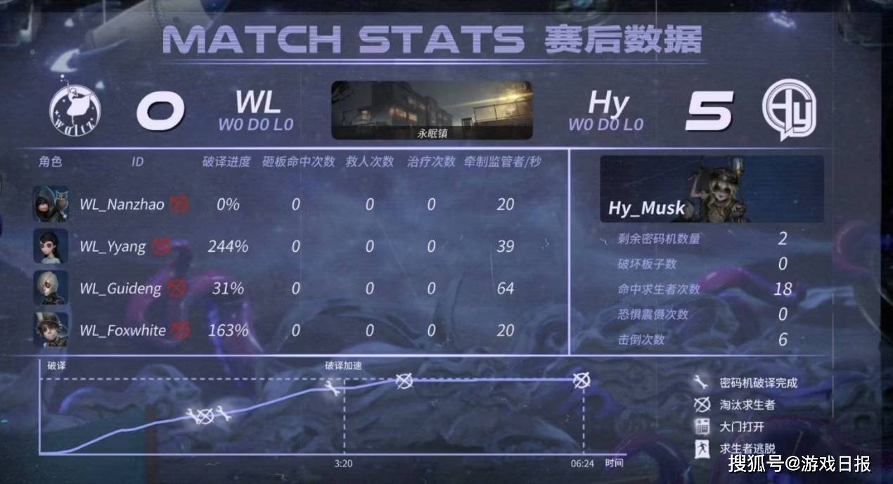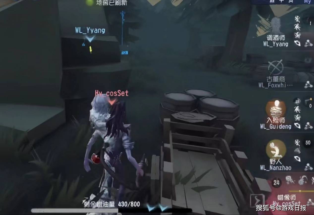 此时场外密码机破译进度并不乐观,蜡像师把握战局。野人卡住耳鸣,调酒师一人破译,在入殓师淘汰进度过半后野人被发现,蜡像师普攻命中并打断了骑乘状态的切换。无奈野人只能尽全力救援,但蜡像师开启热蜡不给机会,将野人在椅前击倒。