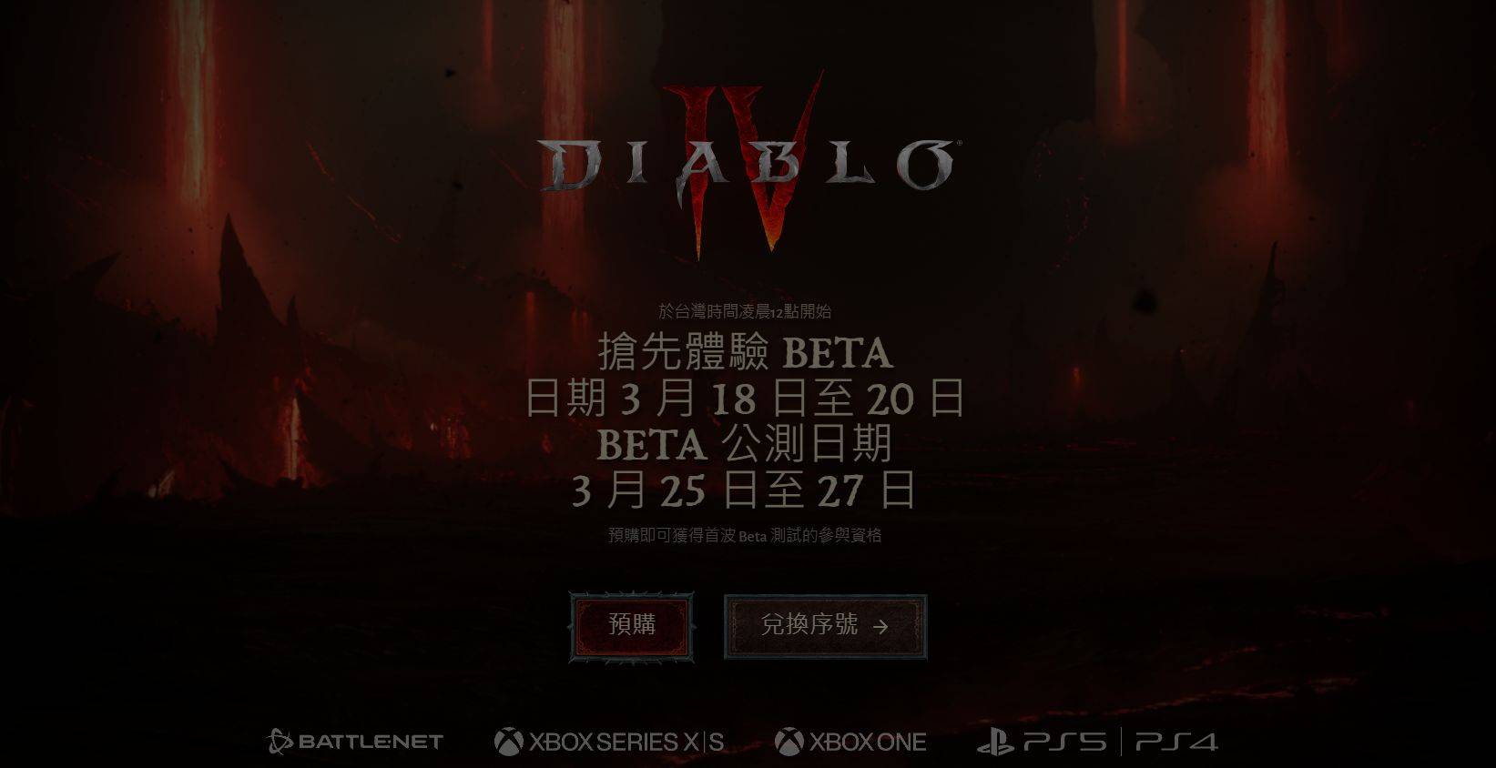 暗黑破坏神4预购玩家抢先测试预载时间为3月16日,BETA测试时间为3.18至3.20。