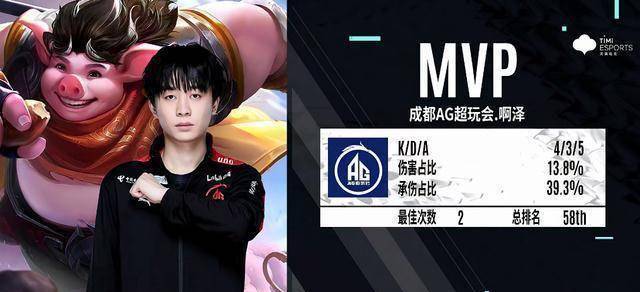 本场比赛的MVP给到了成都AG超玩会边路选手阿泽4-3-5特鲁姆普。灵儿:这是泽猪八戒改变了节目的方式。网友:猪王阿泽征服了导演的心。猪哼哼:楚臣娜可露露前期丢分太多,拿不到MVP很正常。