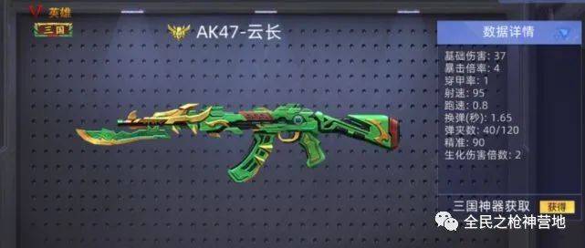 三国云长降临全民枪神“人生天地间,无始终者,非君子也。吾来时明白,去时不可不明白”。由三国纪元的未来科技打造,爆发惊人。可以做到快速长短手切换,与敌人贴身时可以使用刺刀快速攻击基础伤害37,暴击倍率4,穿甲率1,射速95,跑速0.8,换弹::1.65,弹夹数40/120,精准90,生化伤害倍率2。三国纪元版的AK,更为轻便;在造型塑造上也十分用心,刺刀变成了关二爷的青龙偃月刀,显得霸气异常!