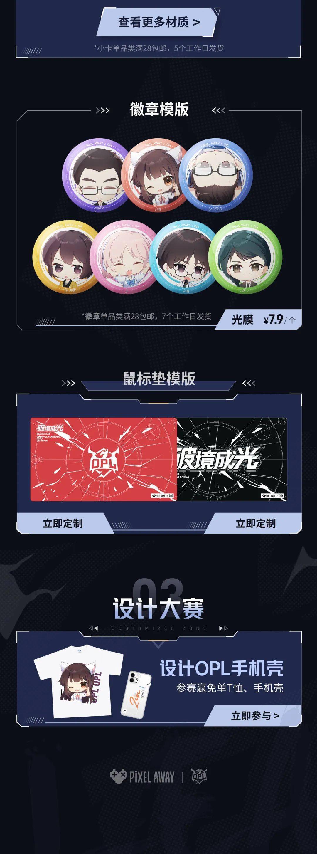 登录 【失控像素】, 手机壳、 小卡、 徽章、 鼠标垫,多样模板任君挑选,自由定制海量周边~