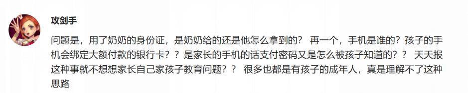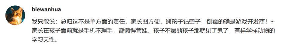 也有网友表示:游戏公司应该进一步加强防沉迷认证流程,家长也应该进一步做好引导和监督,双方合作才能真正解决问题。