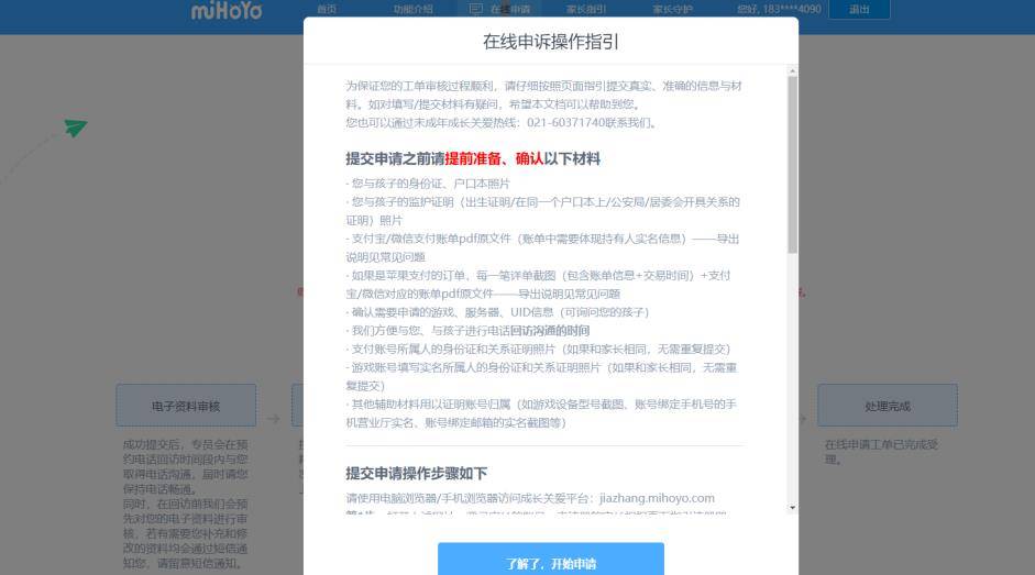 除了退款问题外,“成长关爱平台”也能通过申诉,将“钻空子”绑定了成年人认证信息的账号变更为未成年人认证,家长只需要进入“在线申请”模块,按照操作指引提交材料,申请更改实名认证,同时在账号成功申请变更为未成年人认证之后,进一步通过绑定家长账号和孩子账号,在米哈游成长关爱平台随时监督、管理孩子的游戏娱乐时间及消费。