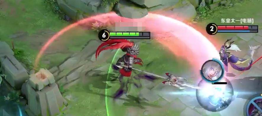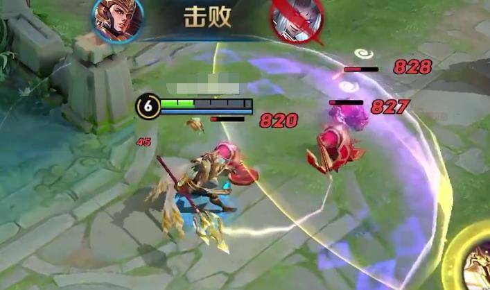 杨戬也是一个横扫伤害很可怕的英雄,因为他的横扫全都是暴击伤害。而且,当自己生命值低于敌人时,还有个眩晕效果。