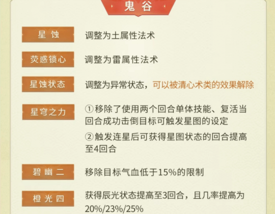核心改动内容:鬼谷“星蚀”状态能被“清心术”类特技解除