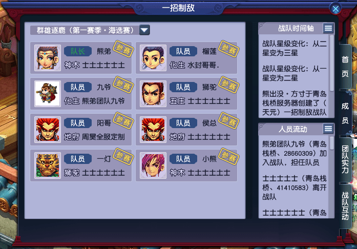 本周日3月19日20:00即将打响第200届武神坛的总决赛,让我们一起拭目以待!要问这第200届武神坛晋级赛,哪支队伍最抢眼,【青岛栈桥】服务器必有一席之地。这只战队不仅凭借出色的战术配合豪取五连胜,还是不少帮战强队的“指明明灯”,以他为首的“血神木”打法已经逐渐成为不少强力帮派的核心战术。下面,就给大家简单介绍一下吧!