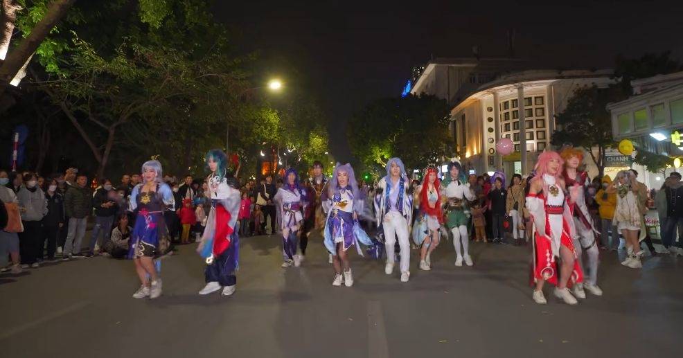 在越南的街头更是有一群原神COS现场跳街舞,身怀绝技表演引来了无数民众围观。