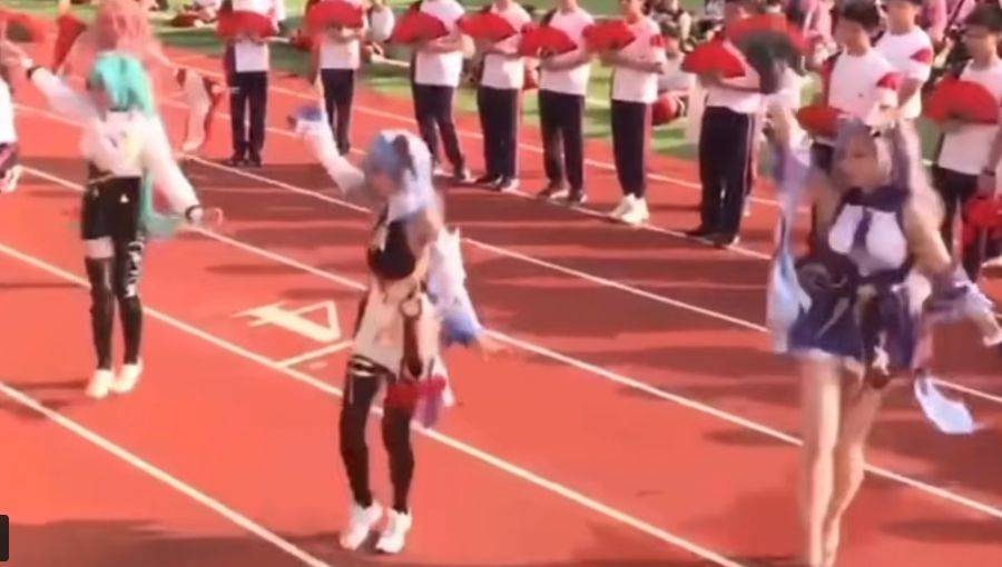 比如国内某所高校的校运会上,COS八重神子、刻晴、甘雨的女同学在操场上来了一段宅舞,全校学生齐呼叫好。