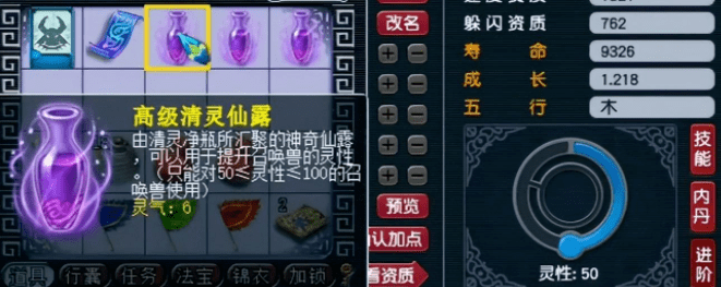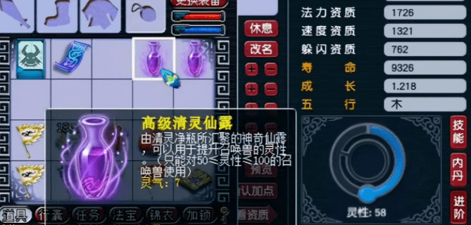 万事开头难,给宝宝进阶也是同样的道理。第一个瓶子他选择喂高6进去,高6进去灵气爆了2点,宝宝灵性到达了58。刚开始瓶子就爆这么多,搞得他突然有点慌。