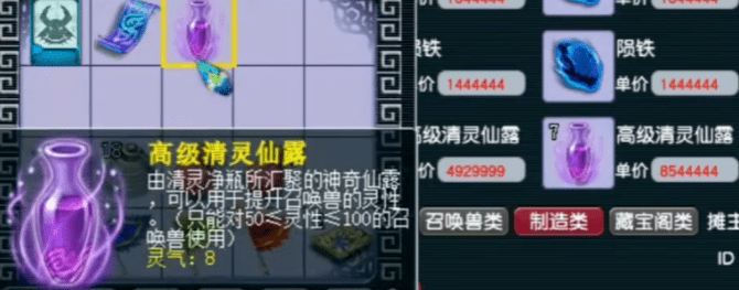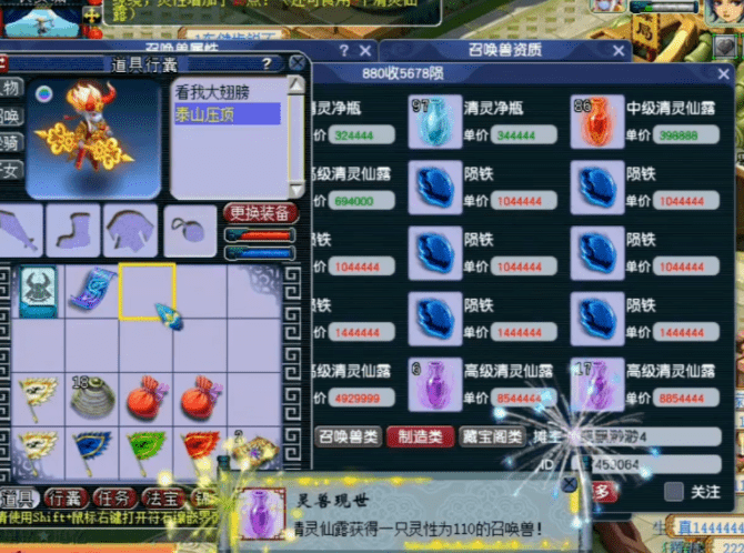 宝宝喂到了100灵性后,他果断买下一瓶高8喂进去。高8刚好爆了2点灵气,110灵性不多不少,灵兽现世成就到手。如此激进的冲110灵性方式确实很玩心跳,如果换成是你的话,你敢这样喂瓶子吗?