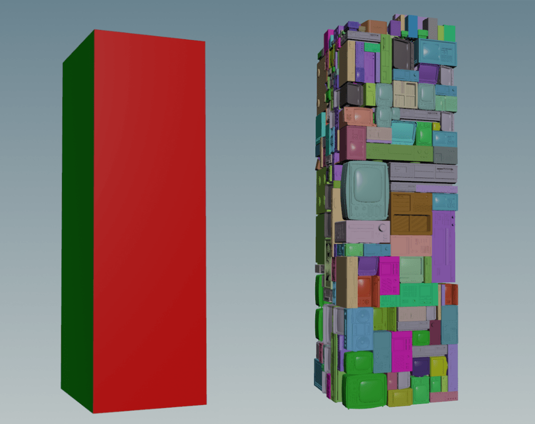 为了丰富视觉层次,场景设计成为了miHoYo Anime本片最下功夫的地方之一——团队设计了电器建筑的各种变体,还加入了大量霓虹灯和广告牌。团队还在特效软件Houdini里开发了自己的程序化生成工具,可以根据建筑外形自动生成堆叠好的电器建筑。