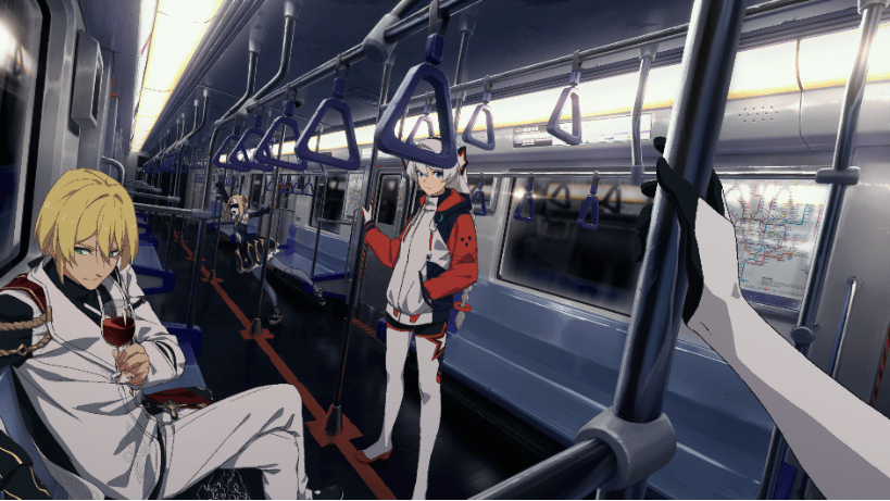 列车里充满复杂的光影反射折射效果,因此采用了PBR流程制作场景,之后在合成阶段通过调整角色的亮度、颜色、模拟从灯光起点到远点照明的衰减渐变等来尝试将角色融入场景