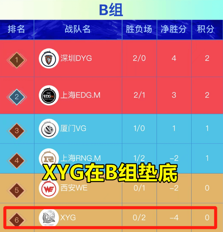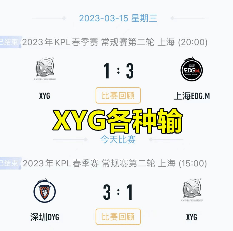 KPL春季赛常规赛第2轮第2周的第1场比赛已经结束,XYG以1比3的比分惨败DYG。这场比赛对于XYG来说不仅仅是一次失利,更是他们走向淘汰的又一步。在常规赛首轮表现糟糕的情况下,XYG被分配到了B组,而B组的竞争实力被KPL业内人士称作史上最强,多支战队实力强劲,这就给XYG前进的道路添上了重重难关。